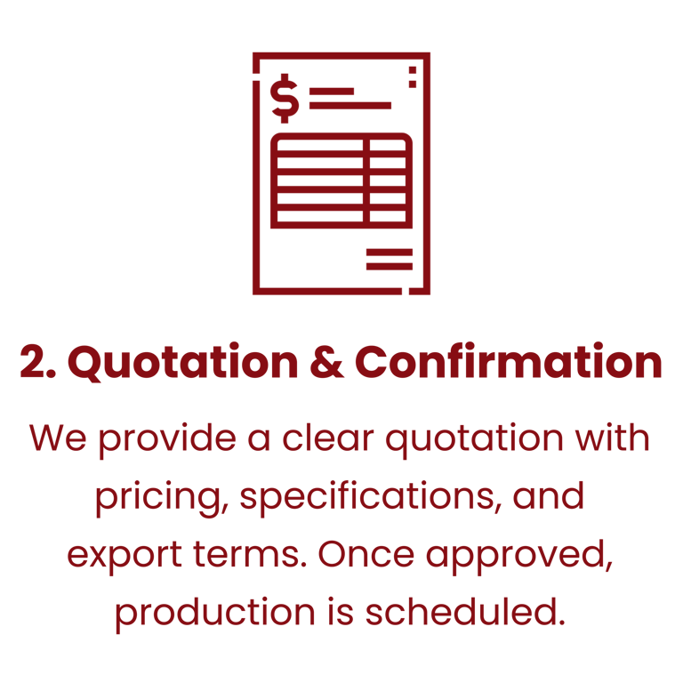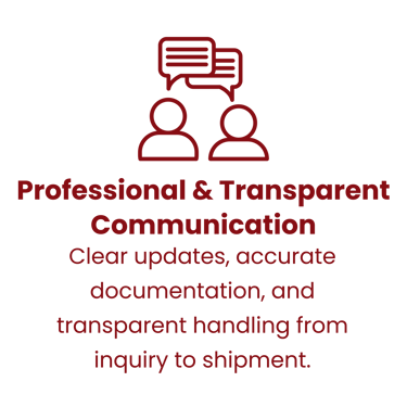 We provide clear, responsive communication from inquiry to shipment arrival.
