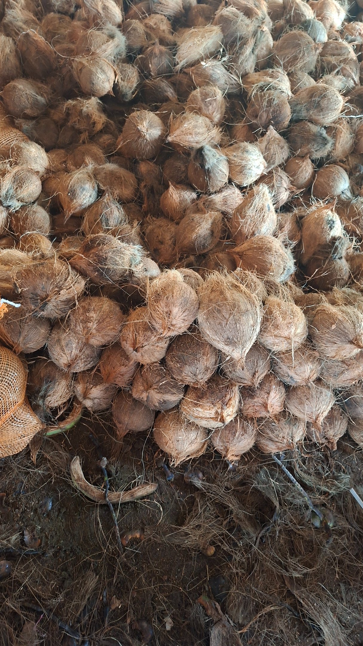 Fully matured coconuts with the husk are left intact over the “eyes” of the coconut, a very sensitive area.
